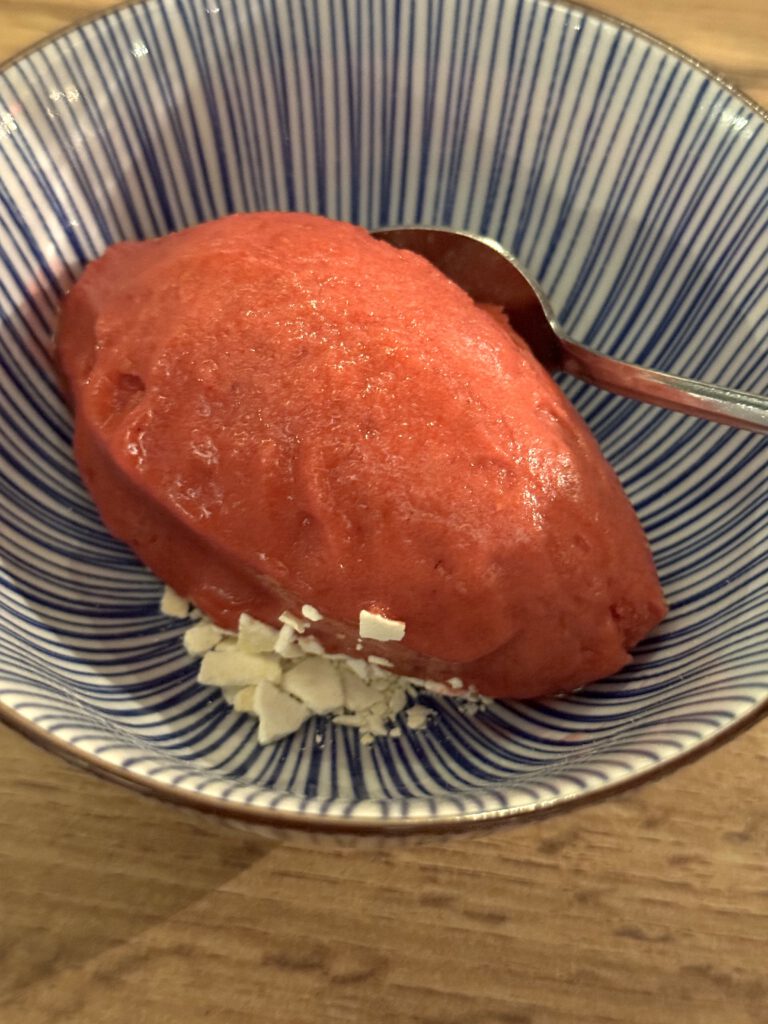 Ich entscheide mich für Himbeere, die Cremigkeit ist zwar nicht auf „PacoJet“-Niveau, aber dennoch ein perfekter Abschluss dieses vorzüglichen Abendessens. Da kommen wir bestimmt wieder!