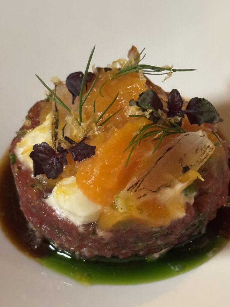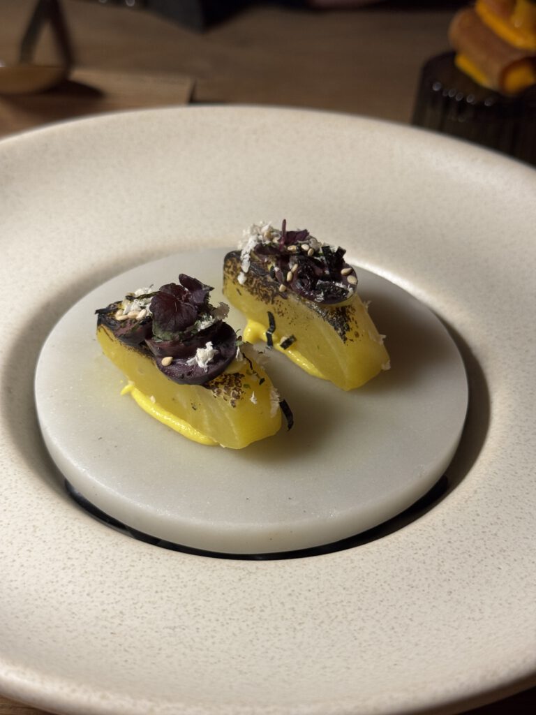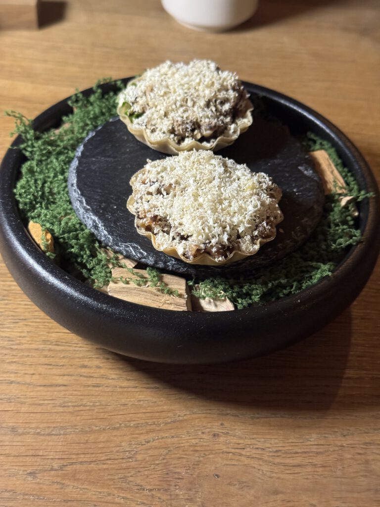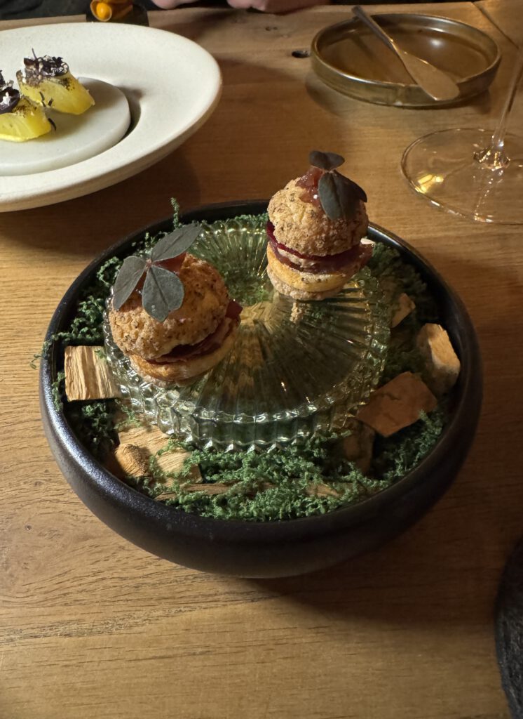 Zunächst aber genießen wir diesen außergewöhnlich leckeren Schaumwein mit einer kaum enden wollenden Menge an Grüßen aus der Küche mit viel Geschmack und verschiedensten Texturen, wie eingangs erwähnt, eher Kunst als Schmaus.